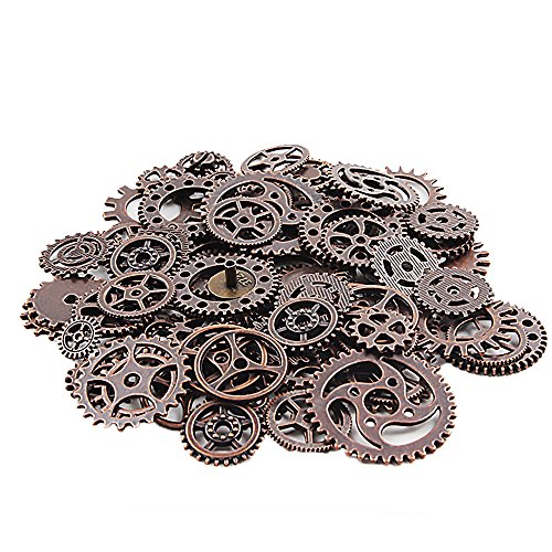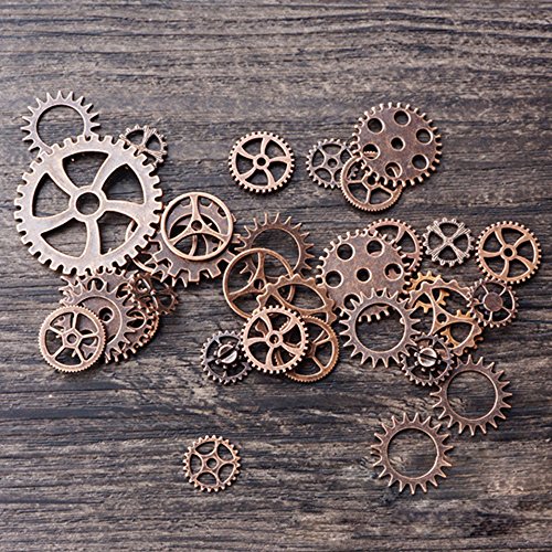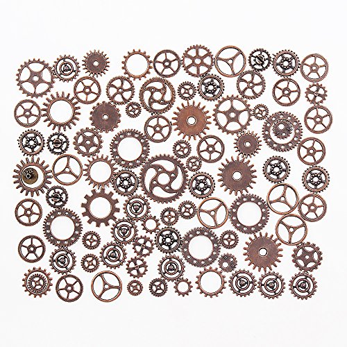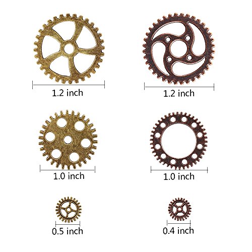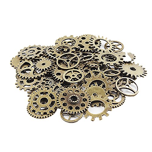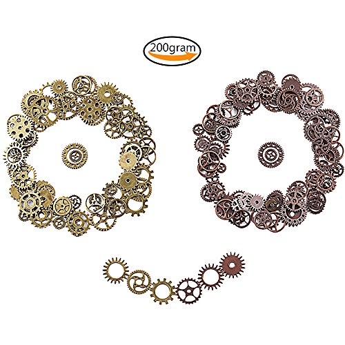 Teenitor 200 Gram (Approx 140pcs) Bronze and Copper Assorted Antique Steampunk Gears Charms Pendant Clock Watch Wheel Gear for Crafting, Jewelry Making