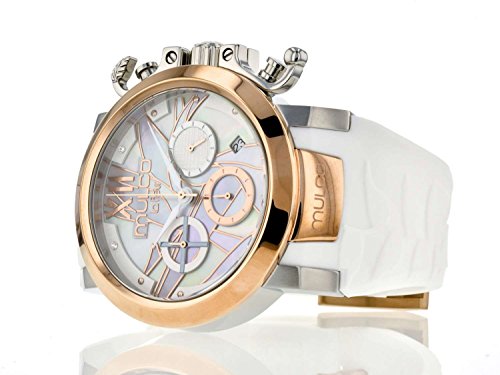 Mulco La Fleur Ave del Paraiso Swiss Chronograph Quartz Movement Women's Watch | Mother of Pearl Swarovski Sundial Rose Gold Accents | White Watch Band | Water Resistant MW3-14009-013