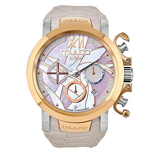 - PUNCTUALITY IS PRICELESS - Mulco has gone tick for tock with other competitive Swiss watches since 1958. Continuing the legacy is the Ave del Paraiso Wrist Watch featuring reliable Swiss Chronograph quartz Movement to synchronize the distinguished gun metal finish and latest design Premium Mother of Pearl and Swarovski Dial. The stainless steel case featuring a fixed Rose Gold finished bezel. Be fashionably punctual with Mulco, not just in time