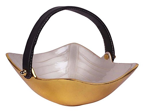 SouvNear 190803081310 Square Metal Bowl with Leather Handles, 7.5"