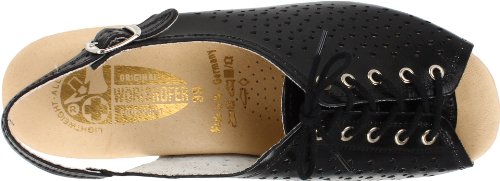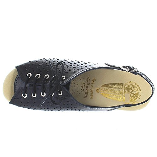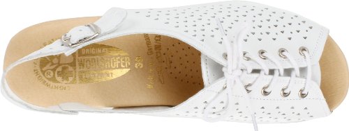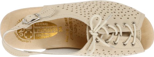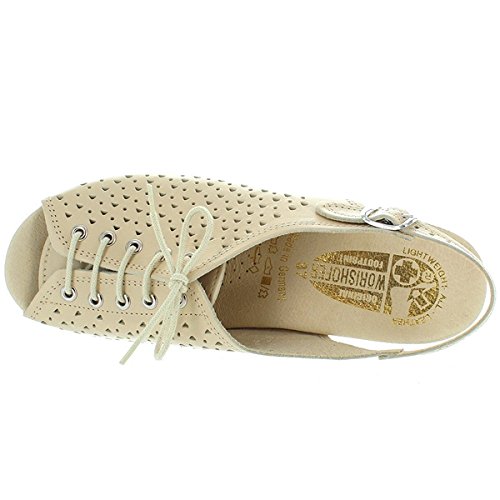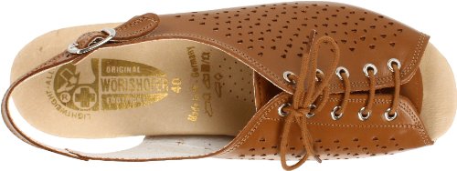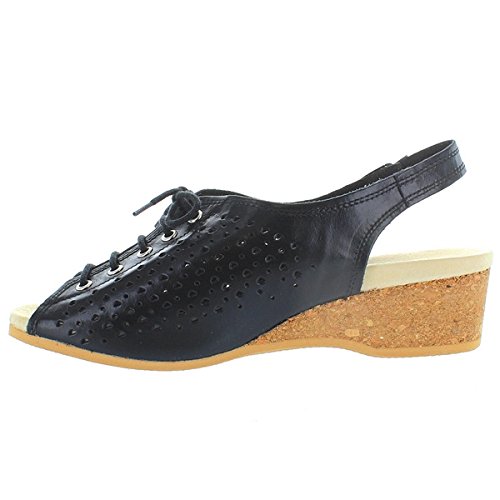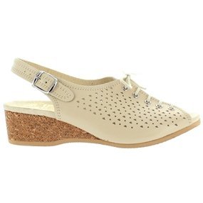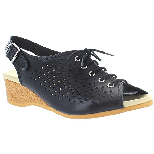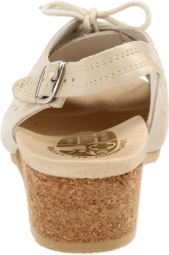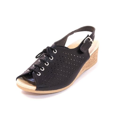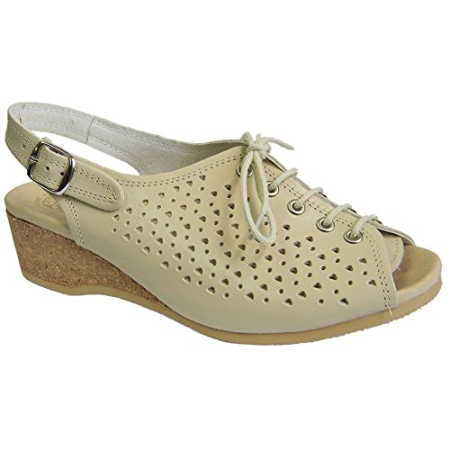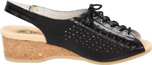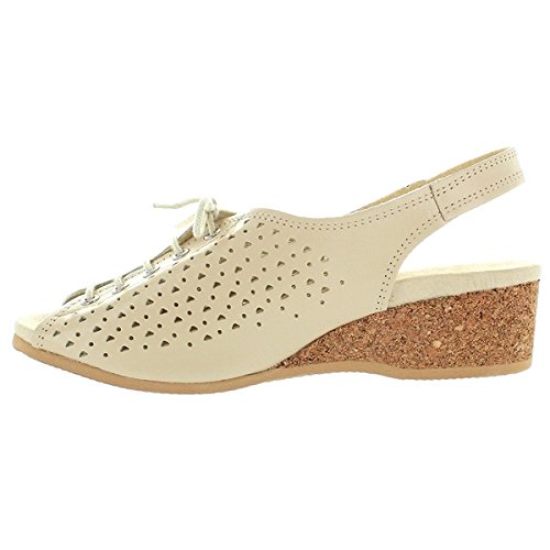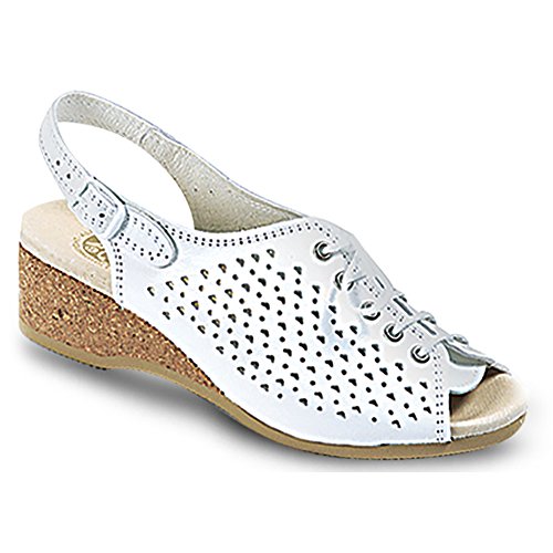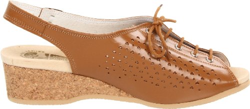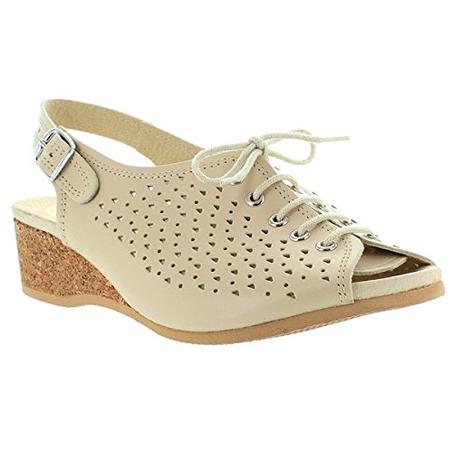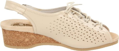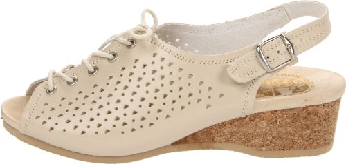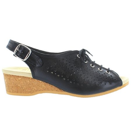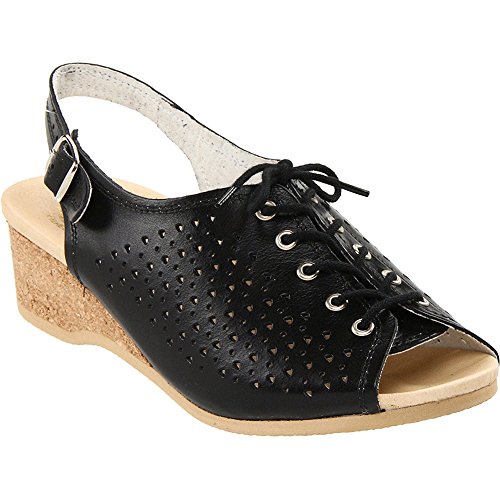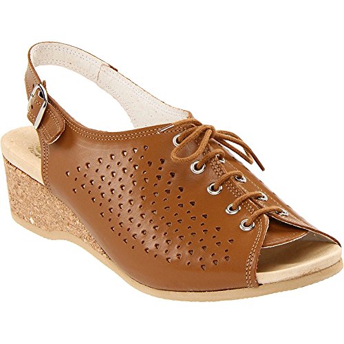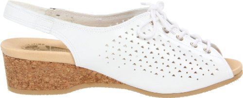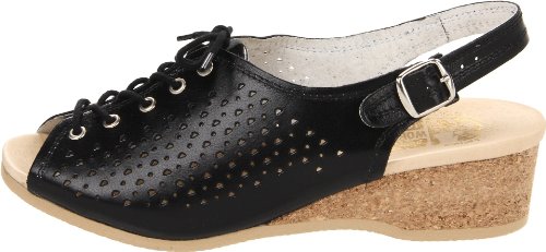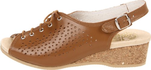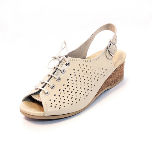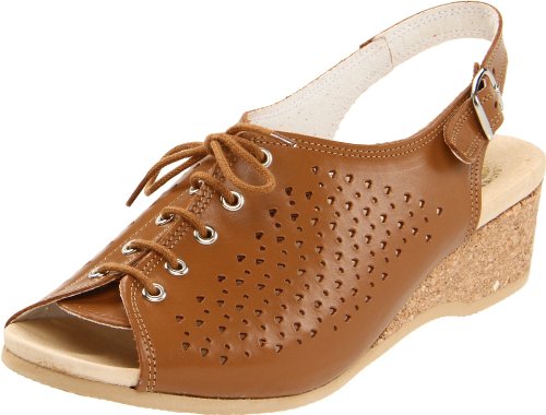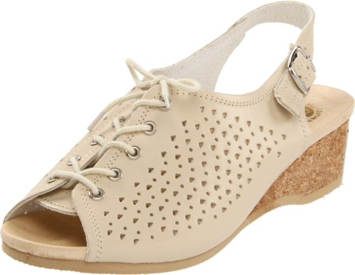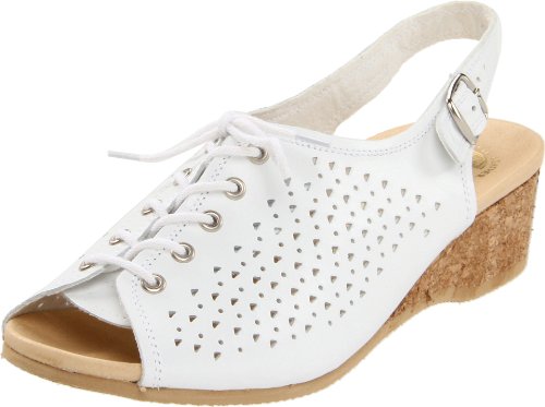 Amazon.com Product Description This lovely leather sandal is a shoe you'll reach for day after day thanks to a cute-as-can-be perforated vamp and charming lace tie. It'll lend summery flair to your wardrobe with a comfy cork wedge and wear-with-anything slingback style.