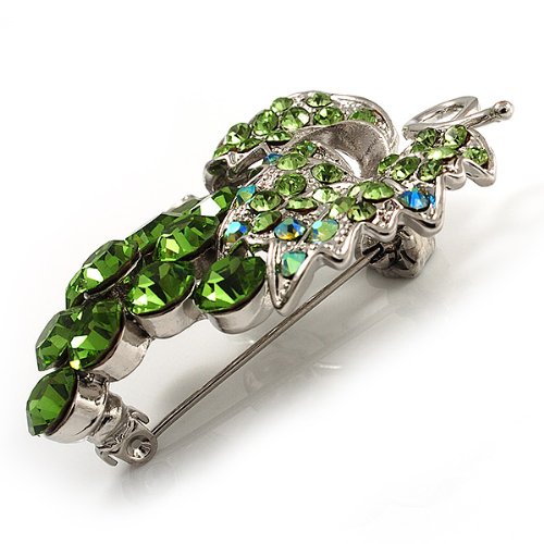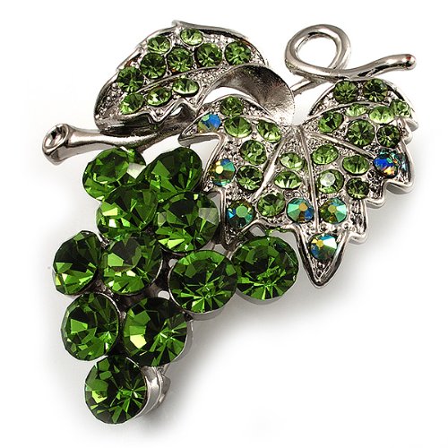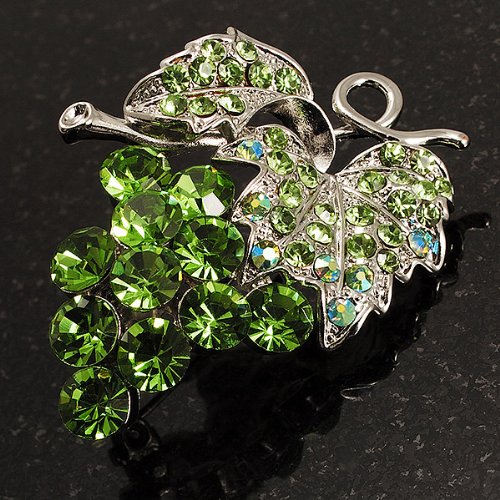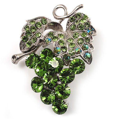 -. Title : Swarovski Crystal Bunch Of Grapes Brooch (Light Green, Silver Tone)