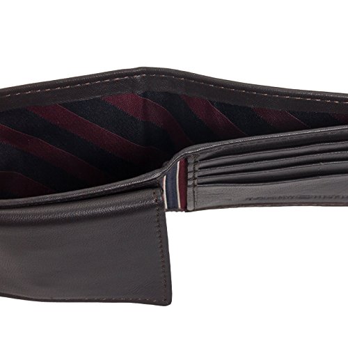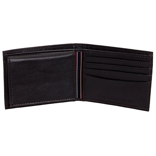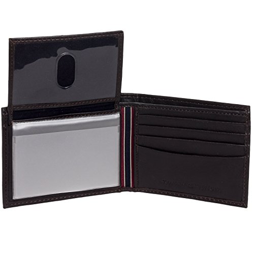 Carry your cash in style with this Stockton Leather Passcase Wallet from Tommy Hilfiger. Constructed of soft, textured genuine leather, this bifold opens to reveal a spacious interior sure to keep you properly organized. 4 card slots, removable pass case holder with 2 thumb-glide card slots, 2 utility pockets, and a lined currency pocket give you plenty of options when storing your everyday necessities. The exterior features the classic Hilfiger logo and name embossed on the front, so everyone knows who you carry. Presented in a gift box. Measures 4.25" x 4.25" x 0.75" (when closed).Feature