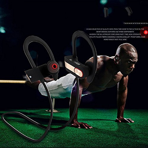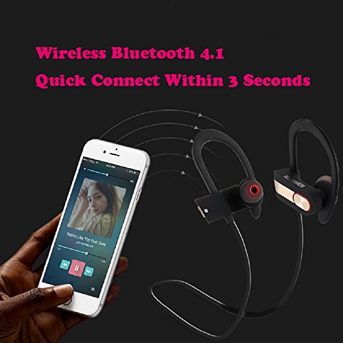 Wireless Bluetooth Earbuds By Jeran Comfortable Headphones with Noise Cancellation Technology, ipx4 Sweat Proof Rated Up To 8 Hrs Music Play Compatible with iPhone iPad & Android Devices (Golden)