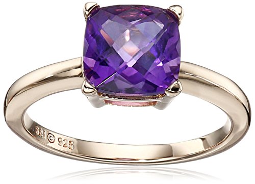 Rose Gold-Plated Sterling Silver Amethyst Cushion Ring, Size 7