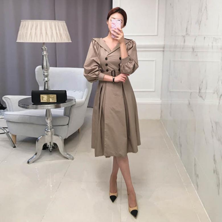 프렌치 무드의 트렌치 플레어 원피스