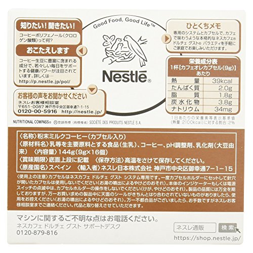 원본상품명: ネスカフェ ドルチェグスト 用カプセル カフェオレ 16杯分