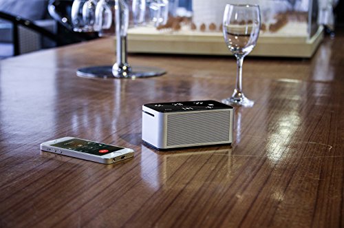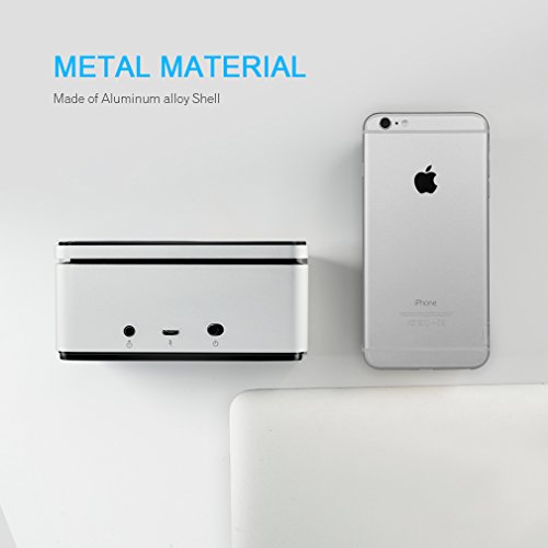 -. Feature : High quality clear sound: Enjoy crisp, clear audio with impressive volume powered by 45mm diameter speakers drivers / One big passive subwoofers and special design for enhanced bass performance and hear the soaring highs and deep lows of all your favorite tracks / Supports wireless music streaming via Bluetooth 4.0 and NFC technology, that offers you instantaneous connection and longer wireless connectivity / Built-in 1000 mAh rechargeable lithium battery that provides up to 8 hours of playback time and can easily recharged using included micro USB cable / High end design: Metal aluminum shell been polished by high technology to make it have smooth touch feeling