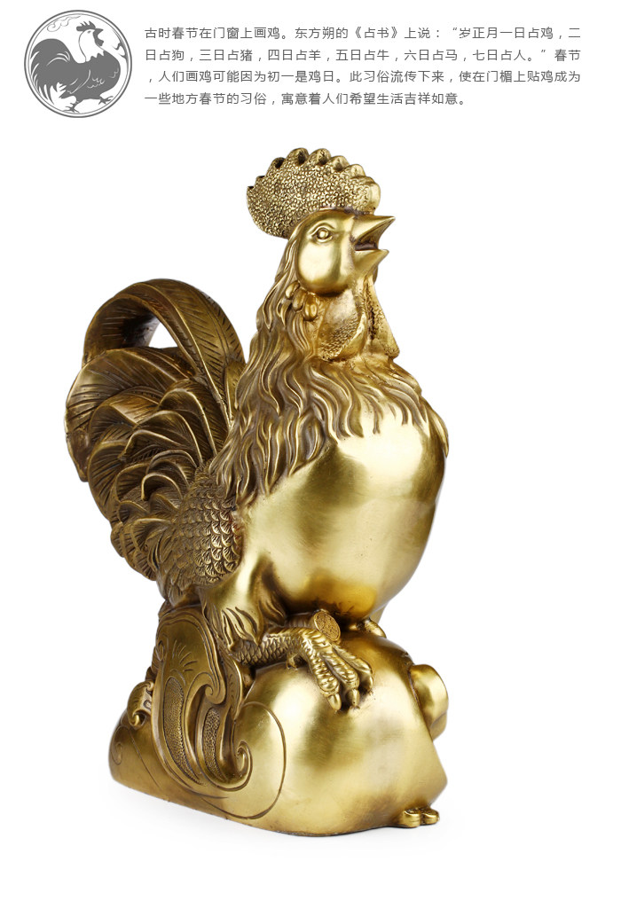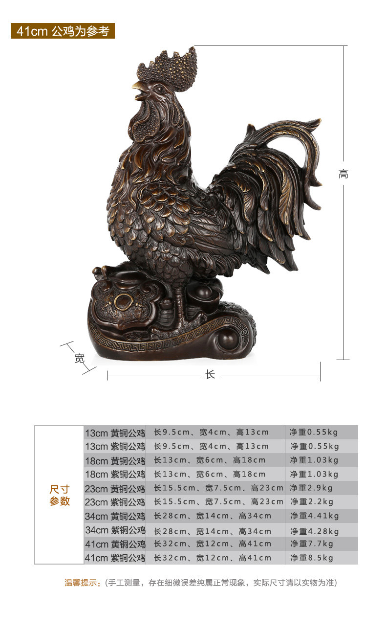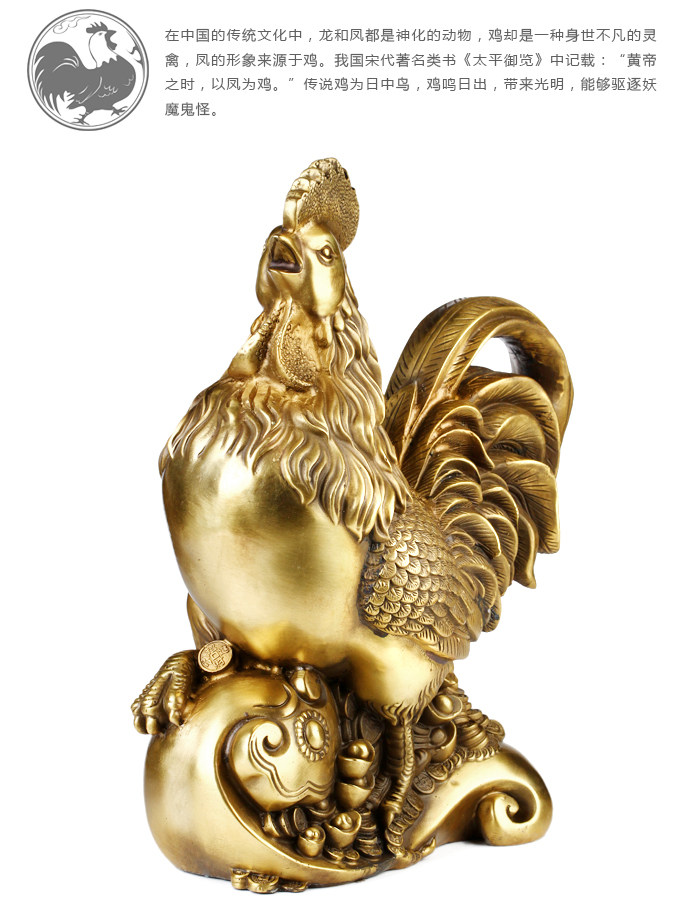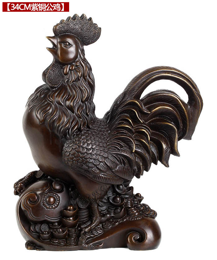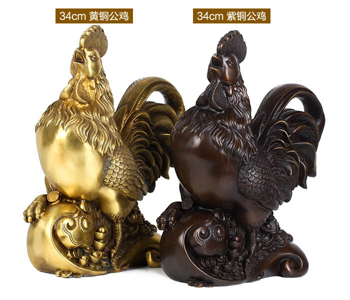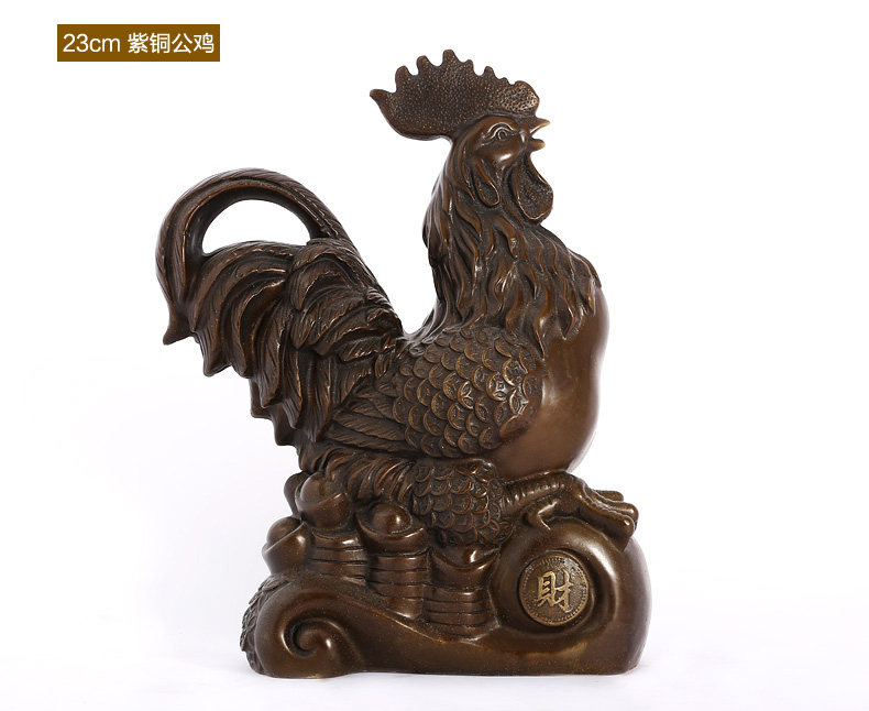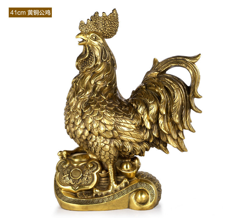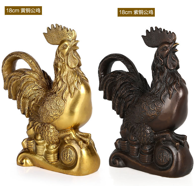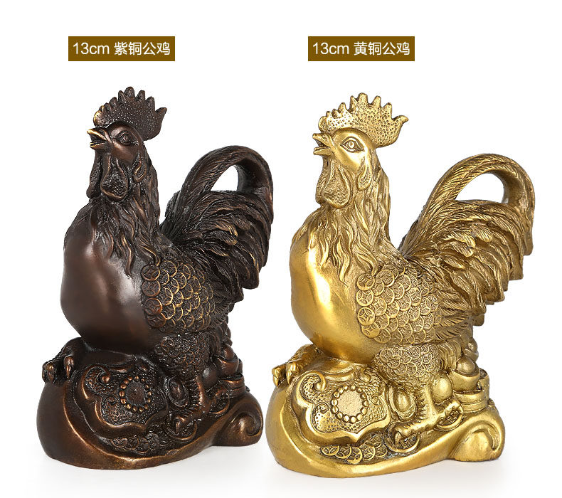 铜公鸡摆件 纯铜鸡招财风水元宝金鸡客厅工艺品助姻缘装饰品摆设