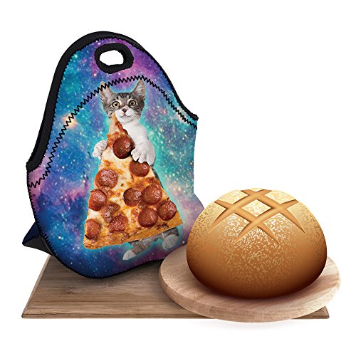 Boys Girls Kids Women Adults Insulated School Travel Outdoor Thermal Waterproof Carrying Lunch Tote Bag Cooler Box Neoprene Lunchbox Container Case (Cat Take Pizza)