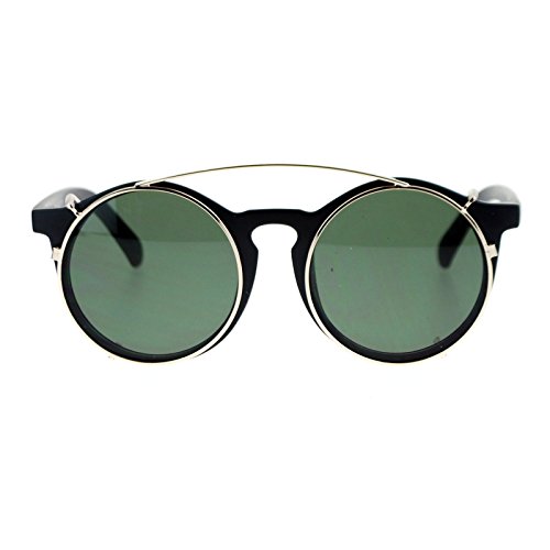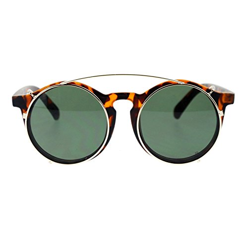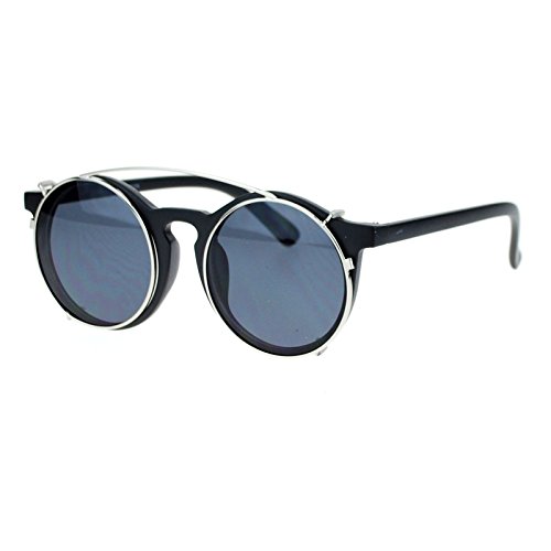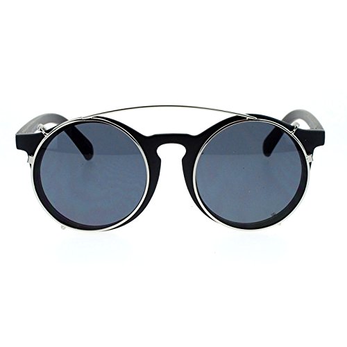 SA106 Clip On Round Circle Lens Retro Keyhole Glasses Sunglasses Black Silver