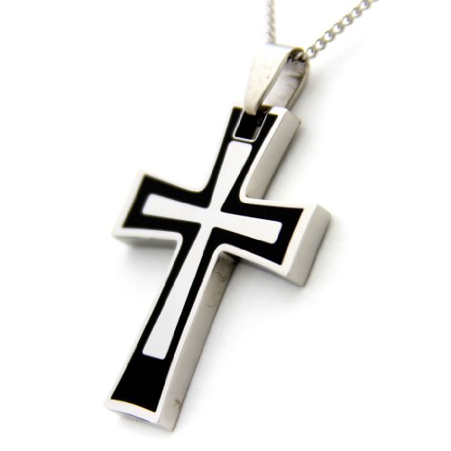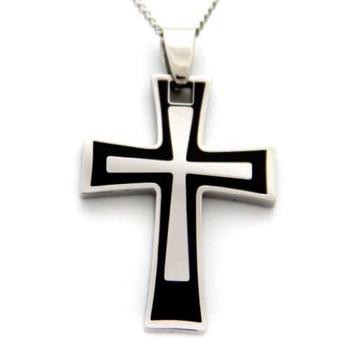 -. Title : Cross Pendant Necklace With Black Enamel Stainless Steel Cross Religious Necklace Crucifix Cross Pendant