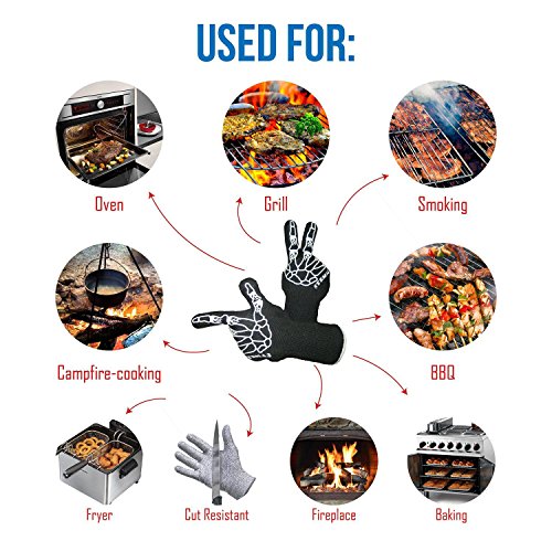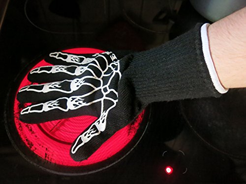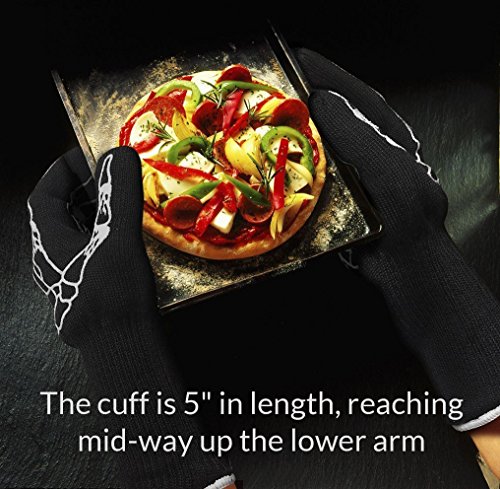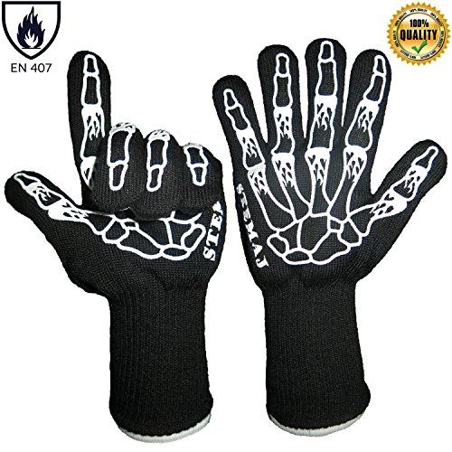 STEMAJ Heat Resistant Gloves 932F - BBQ Gloves - Grilling Gloves - Fire Resistant Gloves - Cut Resistant - for Cooking, BBQ, Oven, Fireplace - 5" Cuff for Extra Forearm Protection (Skeleton)