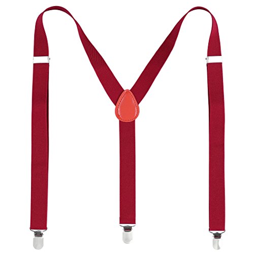 Fashion braces made of elastic fabric material, with Y shape back and 3 clips design. Fuchsia metal thread decor, adjustable and elastic design, made the suspenders. Change your overall image just with changing a fashion and beautiful suspender braces to match your clothing.