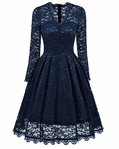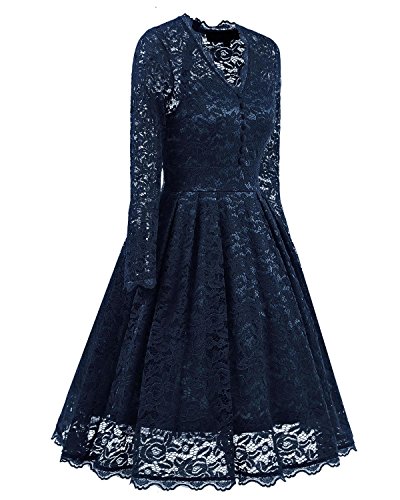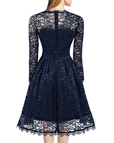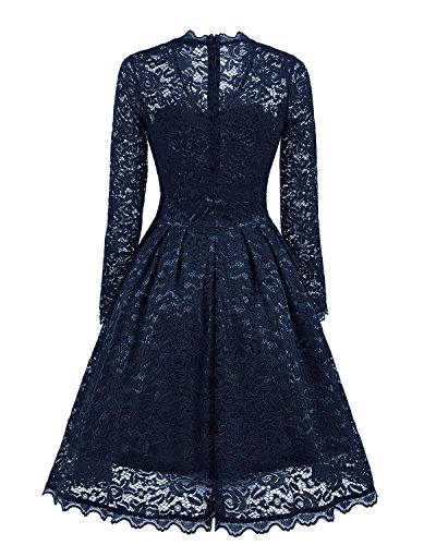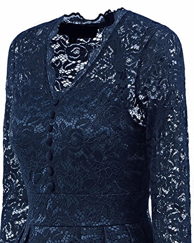 Women 1950 Vintage Wedding Party Floral Lace Long Sleeve Stretch Swing Dress for Business 591 L