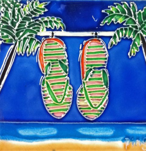 Continental Art Center SD-055 4 by 4-Inch Palm with Flipflop Ceramic Art Tile