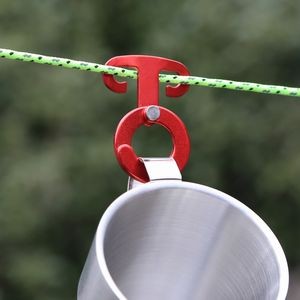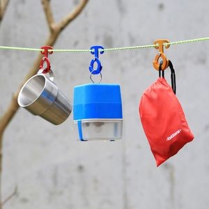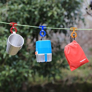 アウトドアキャンプで役立つロープに引っ掛けて使用できる便利な小物吊り下げ用フックです。