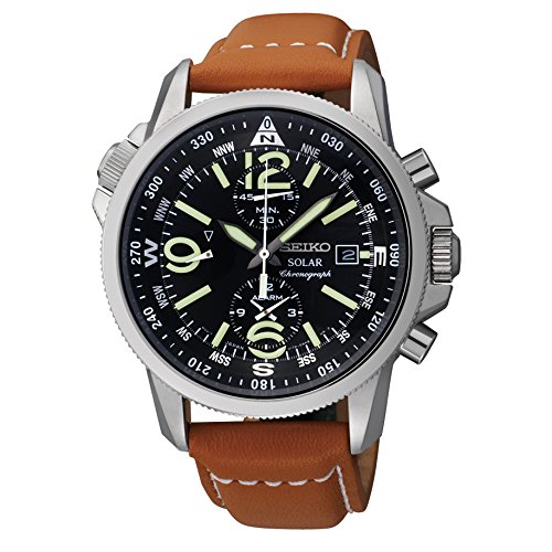 갈색의 가죽 스트랩과 스테인레스 스틸의 케이스.고정 스테인레스제 베젤.실버 톤의 손으로 블랙 다이얼과 인덱스의 시간 마커가 붙고 있습니다.아라비아 숫자는,6,9,12 의 위치를 마크 합니다.분의 마커.kompas 스케일.바깥쪽의 인연의 주위 360 ° 스케일.다이얼 타입: 아날로그.발광수나 마커.3 위치에 날짜 표시.크로노그래프의 서브 다이얼 표시: 3-60 초,60 분,12 시간 (알람).솔라 크로노그래프 무브먼트.V172 엔진.상처가 부착 어려운 하드렉스 크리스탈.질감강 크라운.솔리드 케이스 백.케이스 직경: 41 mm.케이스후: 13 mm 둥근 케이스형..밴드폭: 20 mm 당clasp.수 내성 100 미터/330 피트.기능: 크로노그래프,kompas,날짜,시간,분,초.스포츠 시계의 스타일.시계 라벨: 일본 Movt.세이코 프로 스펙《스》 솔라 크로노그래프 kompas 블랙 다이얼 맨즈 시계 SSC081.