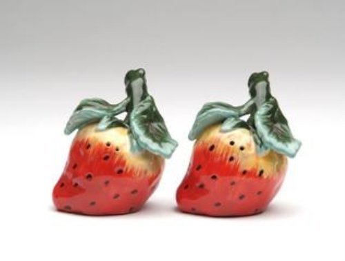 CG 10198 A Pair of Strawberries with Stem & Leaves Salt & Pepper Shakers