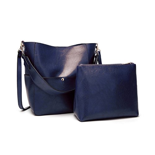 Women's Fashion Vintage Leather Bucket Tote Shoulder Bag Handbag 2 bags for the price of one Model Twins