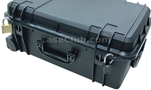 The Case Club Phantom 4 drone case is the best of the best. It fits the Phantom 4 drone. The case was designed by avid fliers with engineering backgrounds. Every inch of space is fully utilized for your drone and accessories. Starting with the lid cutouts, we cut reliefs for the propellers which ensures the perfect fit for the props, preventing them from being bent or touched in any way (unlike competitor's cases!). We've included 2 (reusable) silica gels which stick in the lid and remove moisture inside the case. Perfect when flying around water or in humid environments. Once the canisters are saturated, throw them in the oven to dry them out then use them again! The insert holds the phantom 4 with the propellers on or off. Extra propellers can be stored in the the long pocket next to the drone. The insert is equipped to handle 5 extra batteries along with a battery relief for the actual drone allowing up to 6 batteries total. The propellers on the drone are held in place with precision cut plastic protruding from the foam. This ensures they line up correctly with the lid and prevents them from accidentally being closed in on. A tablet cutout above the drone fits all major tablets (up to 12"x7"x1/2") including ipad air & ipad mini. Two accessory pockets on the right and bottom have removable plastic dividers. Segment either accessory pocket in half or pull out the plastic divider to make room for larger items. Towards the left of the case there is another accessory pocket. The remote cutout fits the Phantom 4 remote perfectly. Small slots hold SD cards nicely organized and well protected. To top everything off, a softer egg-crate foam pad below the drone is included which supports the gimbal and camera. Either leave the stock gimbal guard on or take it off. Drone and accessories depicted in pictures are not included. Case is made in the USA, is 100% waterproof, and made to organize & protect your drone! Case is airline approved for checked luggage.Feature
