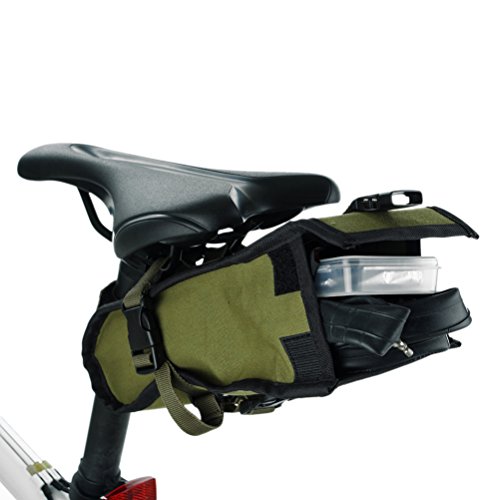 Descriptions: This convenient bag suits tucked beneath your bike's saddle, staying safely out of the way while cycling. Not as bulky as a handlebar or frame bag, the compact size and out-of-the-way location allows greater ease of cycling while still providing enough space to store necessary items such as a puncture kit, hand tools, keys, wallet, phone, or energy bars.