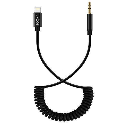 iPhone 7 Spring Aux Cable,UNOOE Aux Cord Car Lightning to 3.5mm Headphone Jack Coiled Audio Cable Adapter for iPhone 8 / 8 Plus / X /7/7 Plus/6/6S/6 Plus,iPods,Home/Car Stereo,Hi-Fi,Headphones,Speaker