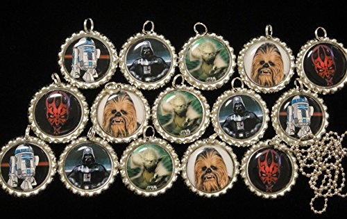 15 STAR WARS Flat Bottle Cap Necklaces for Birthday, Party Favor Set 1