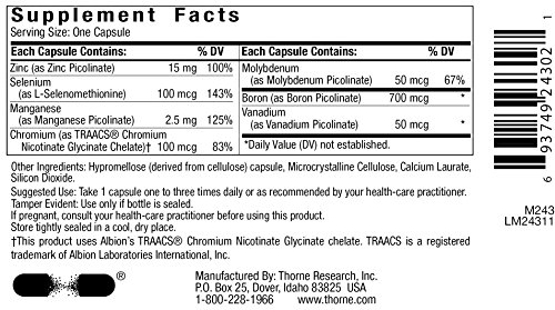 A unique trace mineral complex designed for optimal absorption.Since 1984, Thorne has set the standard for the exceptional formulation and quality manufacturing of nutritional supplements. Thorne delivers premium, science-based products, a health diagnostics technology platform, and the latest in medical education. With more than 350 products, Thorne is the most dispensed brand by 30-40 year old health-care practitioners. Thorne is dedicated to improving the health of our community as well as increasing the knowledge of nutritional health and wellness. Since 2012, Thorne has partnered with educational institutes and local charities to donate more than $1M in products and profits.