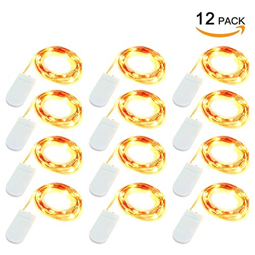 LEDIKON 12 PACK Fairy Lights Battery Operated LED Starry String Lights, 6.56FT/2M Copper Wire String Lights, Warm White ,Waterproof Led Moon Lights for Wedding Centerpiece Jars Christmas Decoration