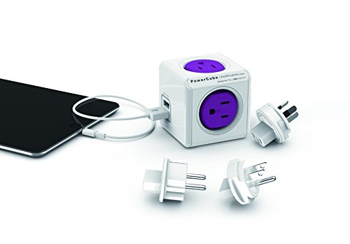 PowerCube Rewireable Electric Outlet Wall Adapter Power Strip with 2 USB Ports, 4 Outlets & 4 Adapter Plugs (IEC Cable Not Included)