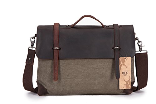 -. Title : BUG Vintage Real Leather Canvas Satchel Messenger Bag, Laptop Briefcase Shoulder Bag