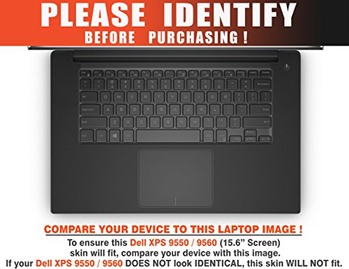 -. Feature : Made for the Dell XPS 15 9550 / 9560 (15.6" Screen) laptop only. Device not included. / Please refer to the "Identify" image on this listing to ensure this skin will fit your device. / Durable, high quality adhesive vinyl stickers; this product is NOT A HARD COVER or made of rubber, silicone, gel, or plastic. / Image COLORS may vary depending on your monitor settings. / Easy to apply with our application tape guide method. If you ever need to remove the Decalrus skins, simply peel it off slowly with your bare hands. It will come off clean without any sticky residue, guaranteed! FREE wallpaper background included.