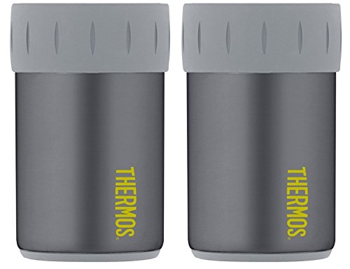Thermos Stainless Steel Beverage Can Insulator for 12 Ounce Can, Charcoal - 2 Pack