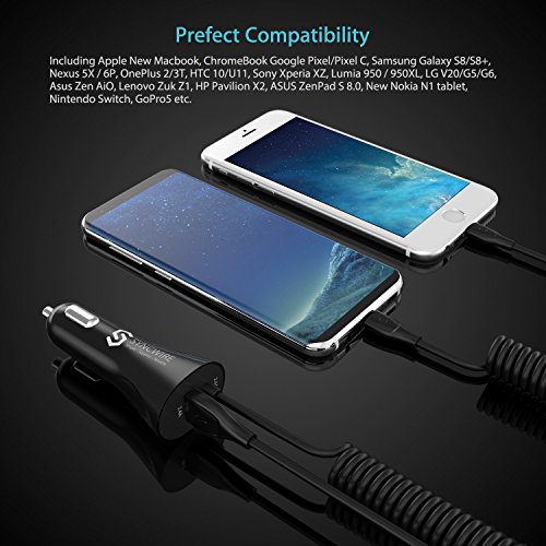 -. Title : USB Type C Car Charger - Syncwire 4.8A/24W Car Charger Adapter with Built-in Coiled USB C Cord for Samsung Galaxy S9/S9+/S8/S8+/Note8, Google Pixel, LG V20/G5/G6, OnePlus 5T/3T & More - Black