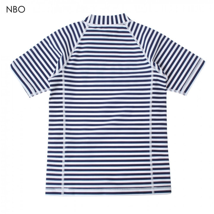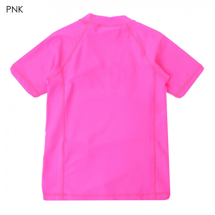 フロントのブランドロゴに夏らしいデザインを施したラッシュガードです。半袖なので腕を激しく動かすシーンでも窮屈感やもたつきが無く、いつも快適な着心地です。紫外線から肌を守るのはもちろん、人混みでお子様を見つけやすいデザインも魅力です。