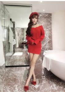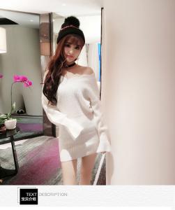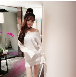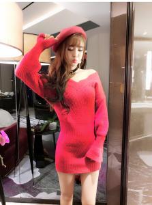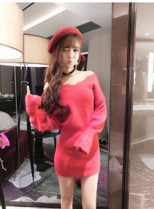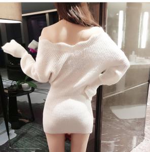 ミニ丈ニットワンピース オフショルニット 長袖 ゆったりニット ガーリーコーデ セーター 秋冬 定番 リブニット