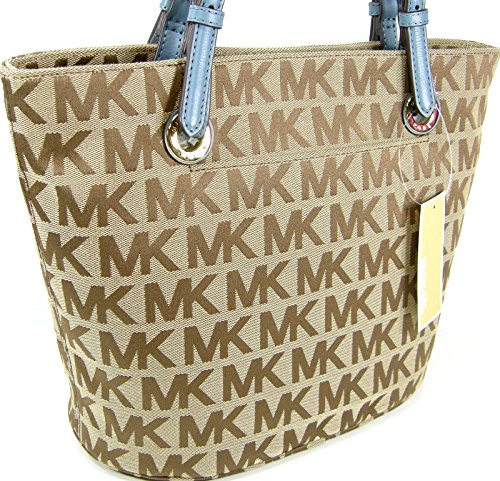 -. Brand : Michael Kors -. Color : Beige, Ebony, Surf -. Department : womens -. EAN : 0887042738159 -. ProductGroup : Shoes -. ProductTypeName : HANDBAG -. Size : Medium -. Title : Michael Kors MK Logo Purse Tote Jet Set Beige Brown Blue Medium Hand Bag -. UPC : 887042738159