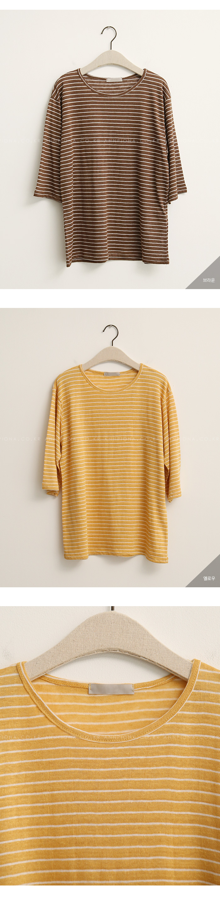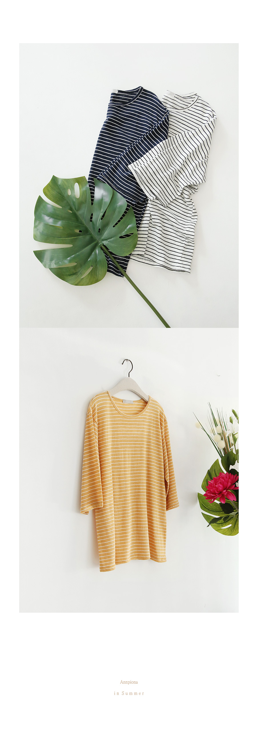 캐주얼한 매력을 느끼실 수 있는 경쾌한 스트라이프 티셔츠입니다