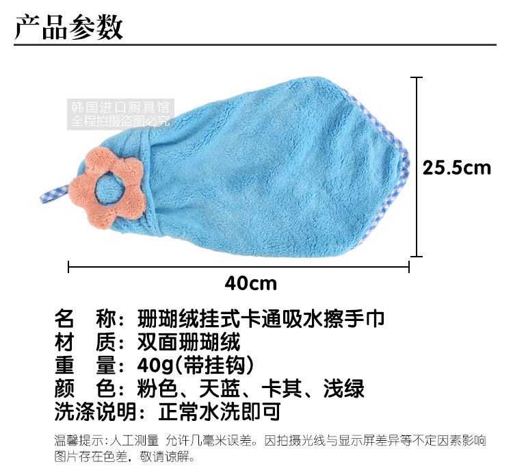 擦手巾卡通可爱挂式超强吸水珊瑚绒加厚毛巾厨房卫生间抹布