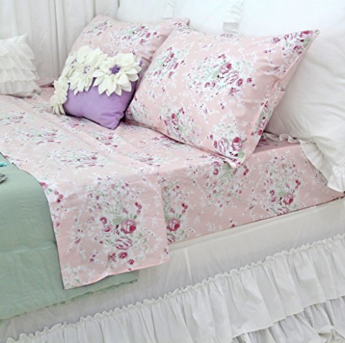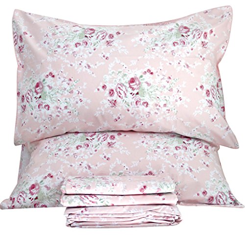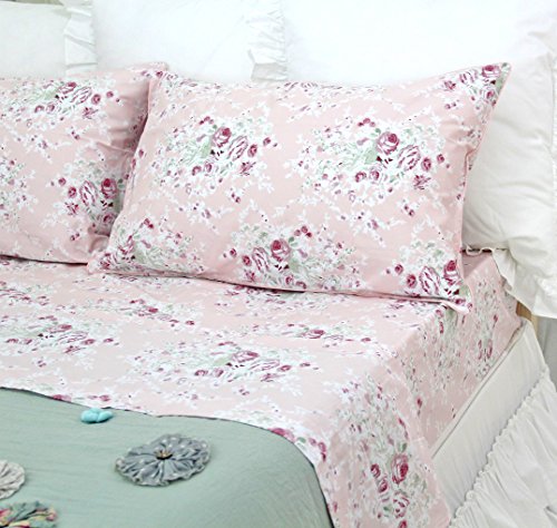 Queen's House Egyptian Cotton Sheets Pink Rose Floral Sheet Sets-Queen,P