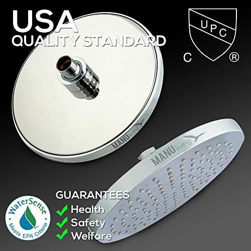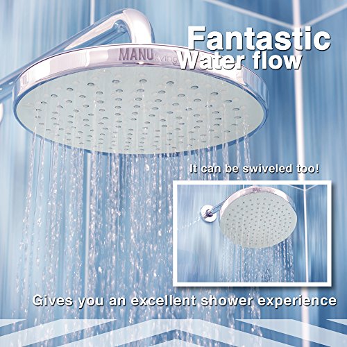LUXURIOUS HIGH PRESSURE SHOWER HEAD RAINFALL WITH INVIGORATING PRESSURE: ManuLiving never sacrifices your comfort. Delight in the premium quality of the 8-Inch wide Rainfall Spa Shower Head right in the comfort of your own home - quality that you previously would have had to travel to high end hotels and exclusive spas to experience.
