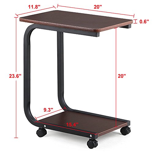 -. Title : 2 Tier Coffee Sofa Side End Snack Tray Table Cart Rolling Over Bed Laptop Table