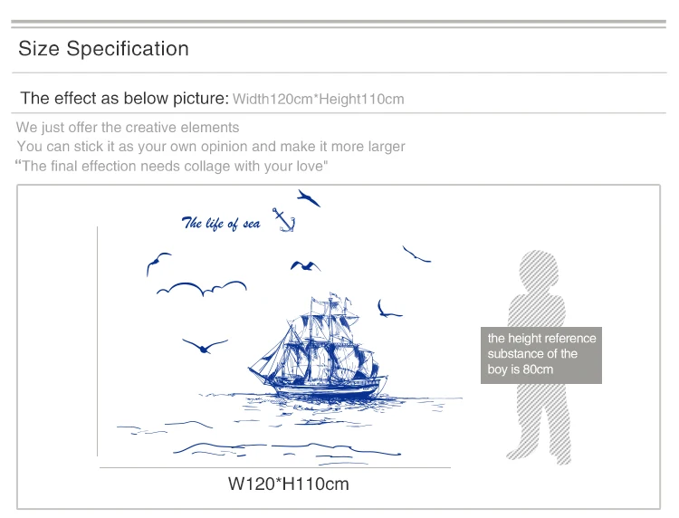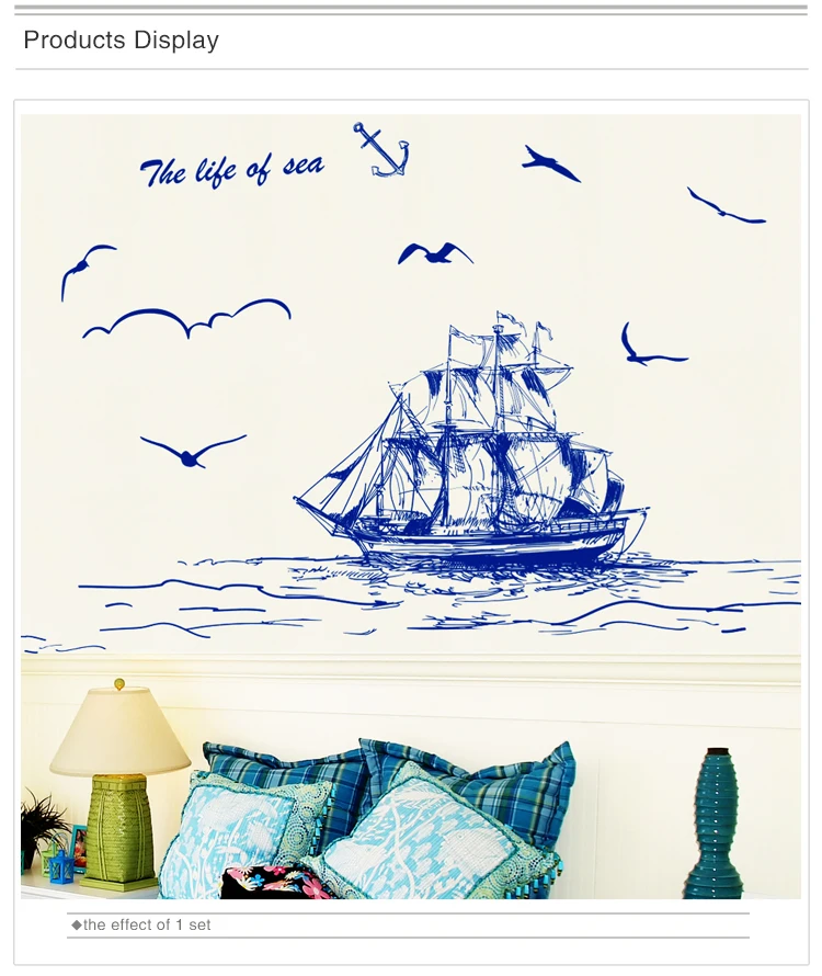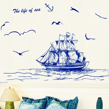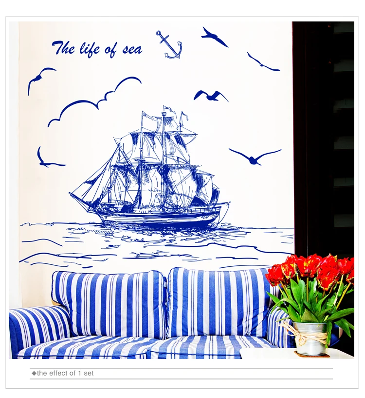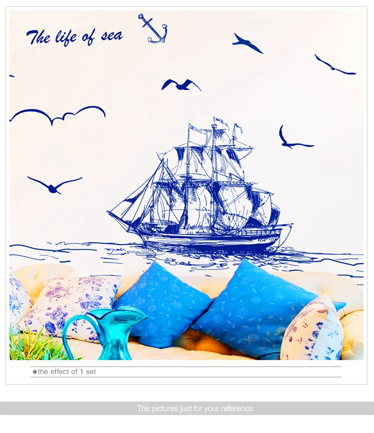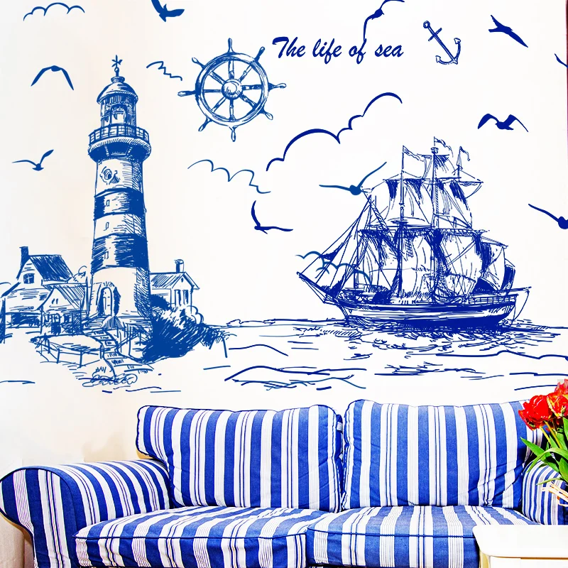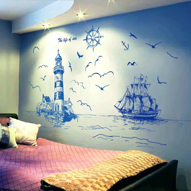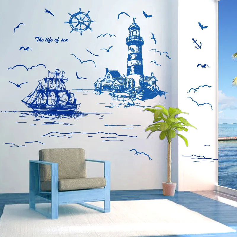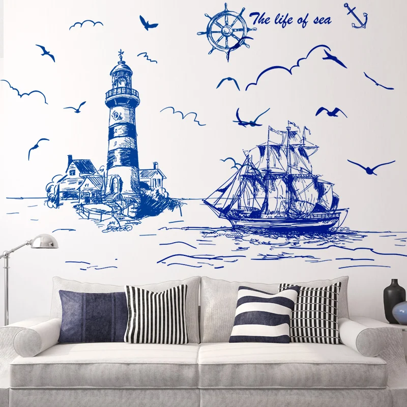 Content:Creative Sailing Boat Lighthouse Birds Wall Sticker