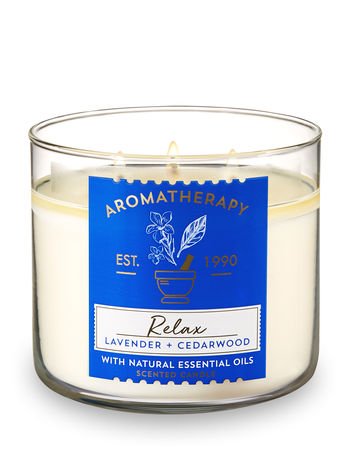 Bath and Body Works 3 Wick Scented Relax Aromatherapy Candle Lavender and Cedarwood 14.5 Ounce with Natural Essential Oils
