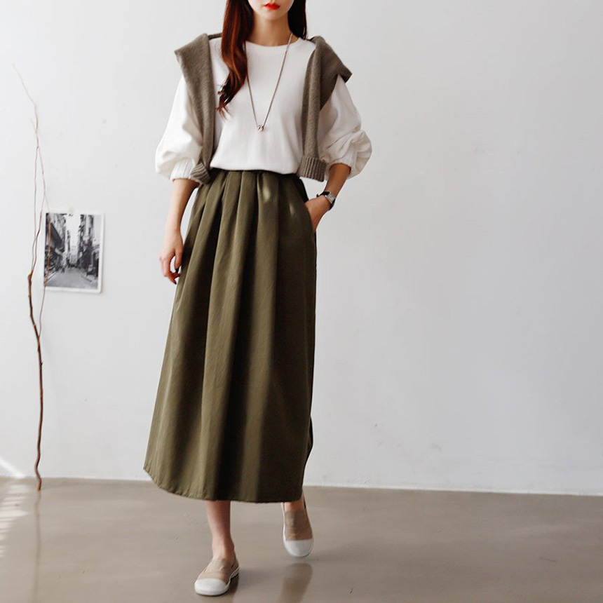 나나 피치 주름 밴딩 롱스커트밴딩으로 편안하게 입으실 수 있는 피치 주름 밴딩 롱스커트 소개해 드릴께요 허리부터 날씬하게 라인을 잡아주고 앞 주름이 시선을 끌어 날씬함이 돋보이며 피치가공으로 따뜻함을 더한 참 사랑스러운 스커트예요 전체 밴딩으로 편하고 허리가 드러나도 상관없을 정도로 밴딩주름 까지도 예뻐요 베이직 니트로 귀여워 보이게 롱니트로 세련되어 보이게 레이어드 하기 좋아서 데일리 아이템으로 추천해요 색상은 카멜, 카키, 블랙사이즈는 FREE 44~66반까지 추천해요 Model : AJ. 165cm . 55size |
