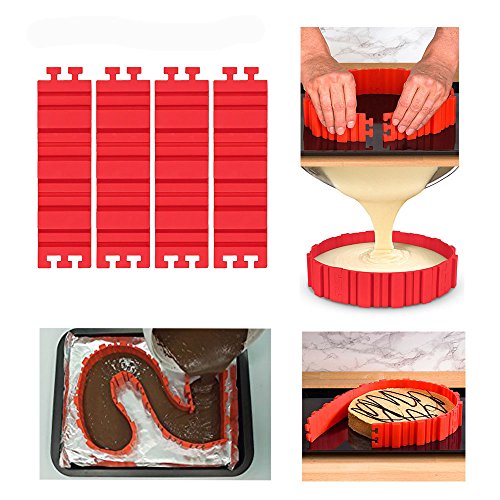 4 PCS Magic Bake Cake Snake Gifts for Kids and Adults - Flexible Silicone DIY Cake Molds - Easy To Use & Wash - Reusable + A Strawberry Scrubber (1)