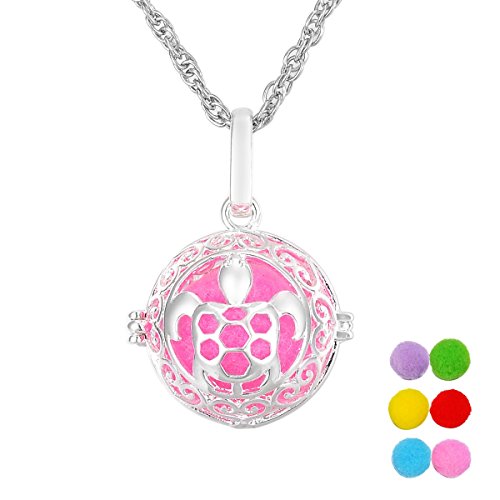 VALYRIA Magic Box Aromatherapy Essential Oil Diffuser Necklace Filigree Hollow Turtle Locket Necklace