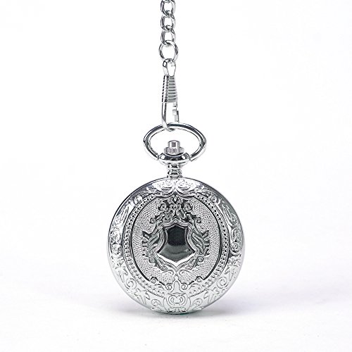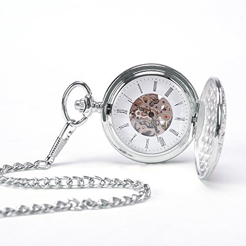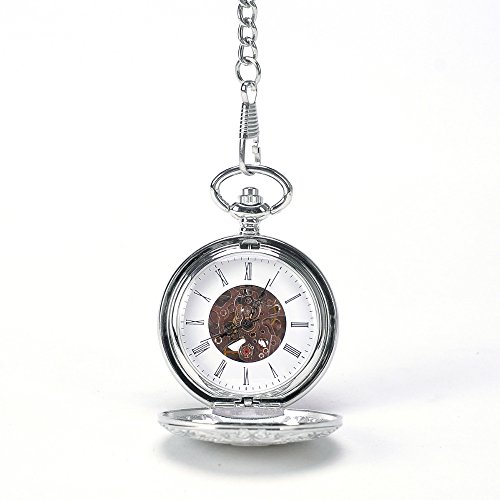 -. Title : Men Mechanical Silver Shield Round Pocket Watch Automatic Self - Wind Fashion Cool Roman Numbers Skeleton Steampunk Watch