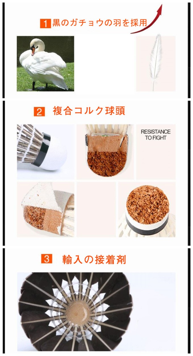 ガチョウ羽根はアヒル羽根より耐久性に優れており、1ダース(12個入り)でコストパフォーマンスがよいです♪【こんな方にオススメ】良いシャトルなのでとにかくたくさん練習したい方に!シャトルを打つ感覚を身付ける最初のシャトルとして!基礎打ちやノック練習に最適です♪【数量】1ダース(12個入り)